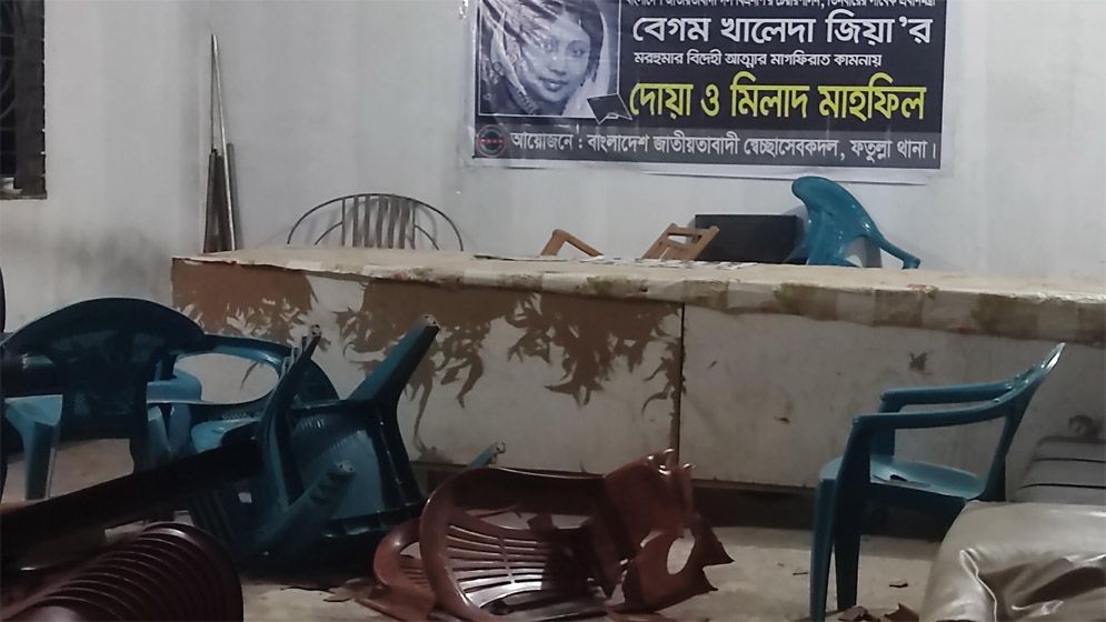 নারায়ণগঞ্জের ফতুল্লা থানা স্বেচ্ছাসেবক দলের এক নেতার কার্যালয়ে সন্ত্রাসী হামলা, ভাঙচুর ও গুলিবর্ষণের অভিযোগ উঠেছে।